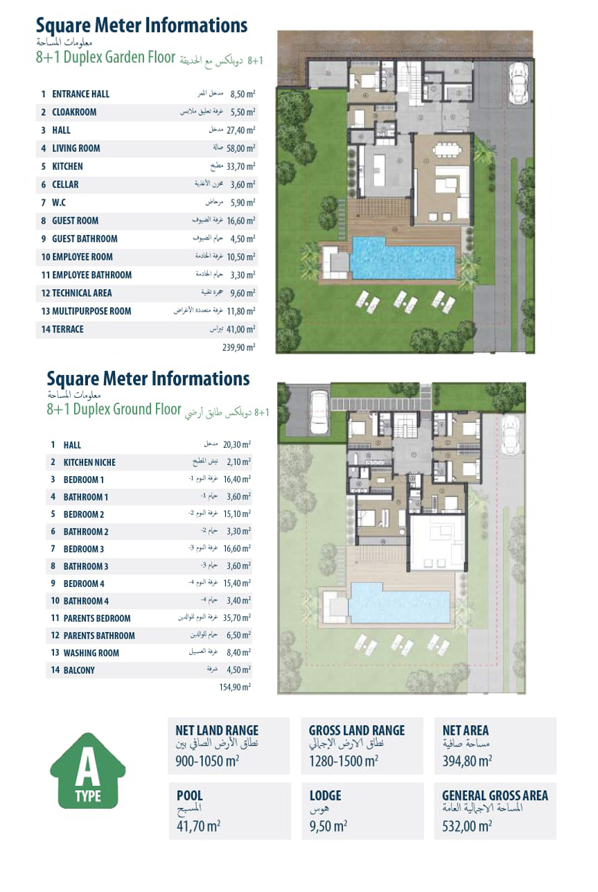تجسيدًا للحياة الفاخرة في فيلا في منطقة بيوك شكمجة المرموقة في إسطنبول. يمتد هذا المشروع الاستثنائي على مساحة 287000 متر مربع، ويضم 225 فيلا منفصلة مصممة بعناية، كل منها توفر مسبحًا خاصًا ومساحة حديقة سخية للاسترخاء والخصوصية القصوى. المشروع أكثر من مجرد مشروع سكني؛ إنه بيان للتميز المعماري والمعيشة الراقية. تم تصميم الفيلات لتحتضن مناظر خلابة للبحر والبحيرة، مع مساحات معيشة تواجه الجنوب تجسد الجمال الهادئ للمناظر الطبيعية المحيطة. يدمج التصميم المدروس للمشروع الجماليات الحديثة مع المواد الممتازة، مما يضع معيارًا جديدًا للحياة الفاخرة في الفيلات. تم تطوير المشروع من قبل أحد أفضل المطورين في إسطنبول، وهو رائد في البناء المعاصر، ويعكس المشروع التزامًا بالجودة والرقي. مع خيارات متنوعة للفلل تتراوح من 5+1 إلى 10+1 وبمساحات تتراوح من 406 إلى 876 مترًا مربعًا، يوفر هذا المشروع ملاذًا مثاليًا للعائلات التي تبحث عن مزيج متناغم من المساحة والأناقة والجمال الطبيعي. اكتشف أقصى درجات الفخامة في المعيشة، حيث تنتظرك فيلا أحلامك.