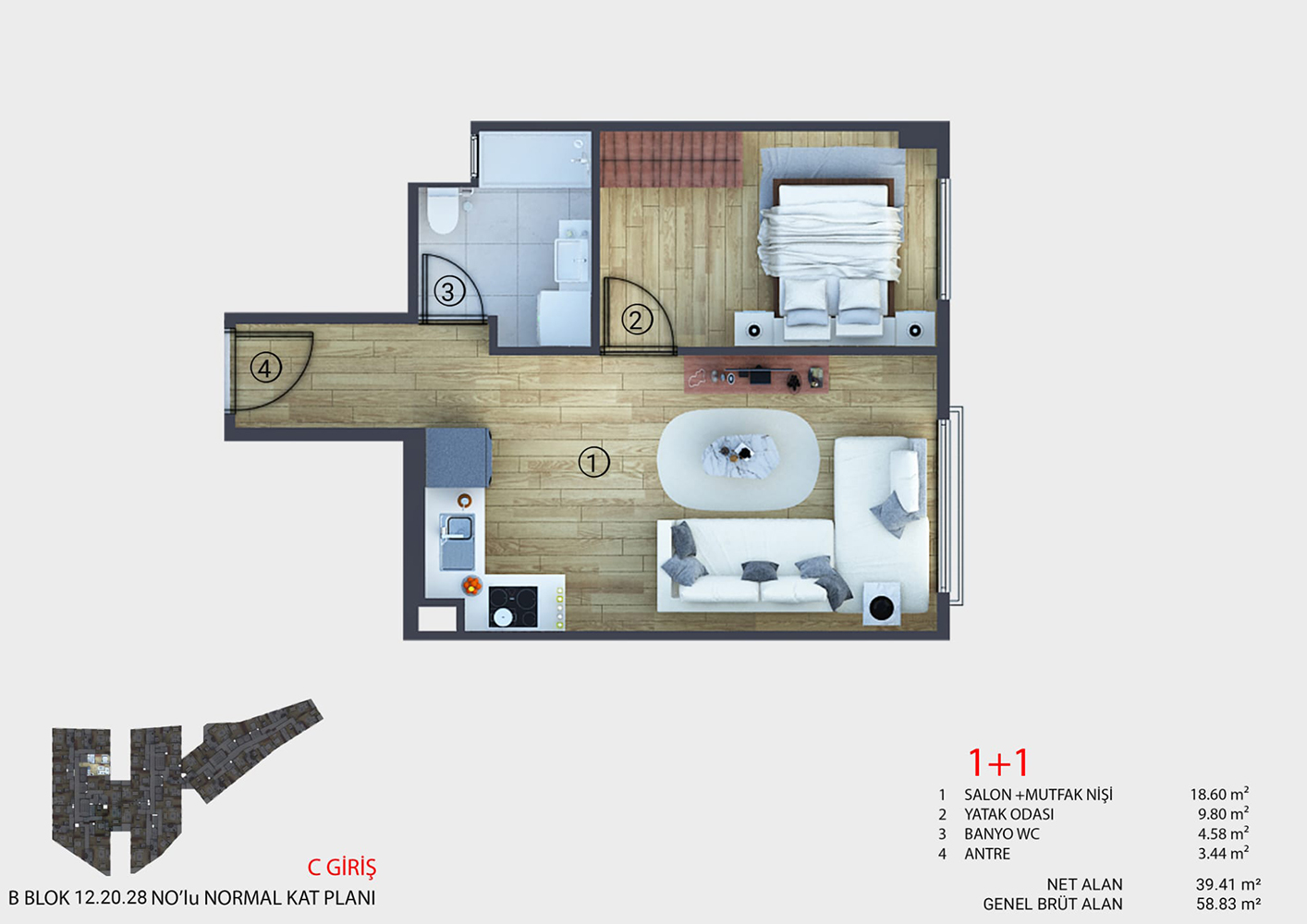- 3+1 124-152 m2 / 280000$- 370000$ / 2 bathrooms