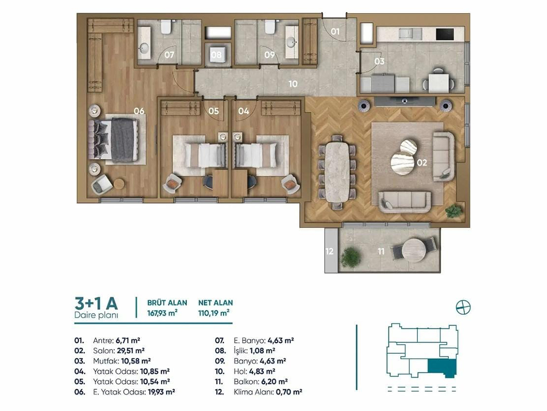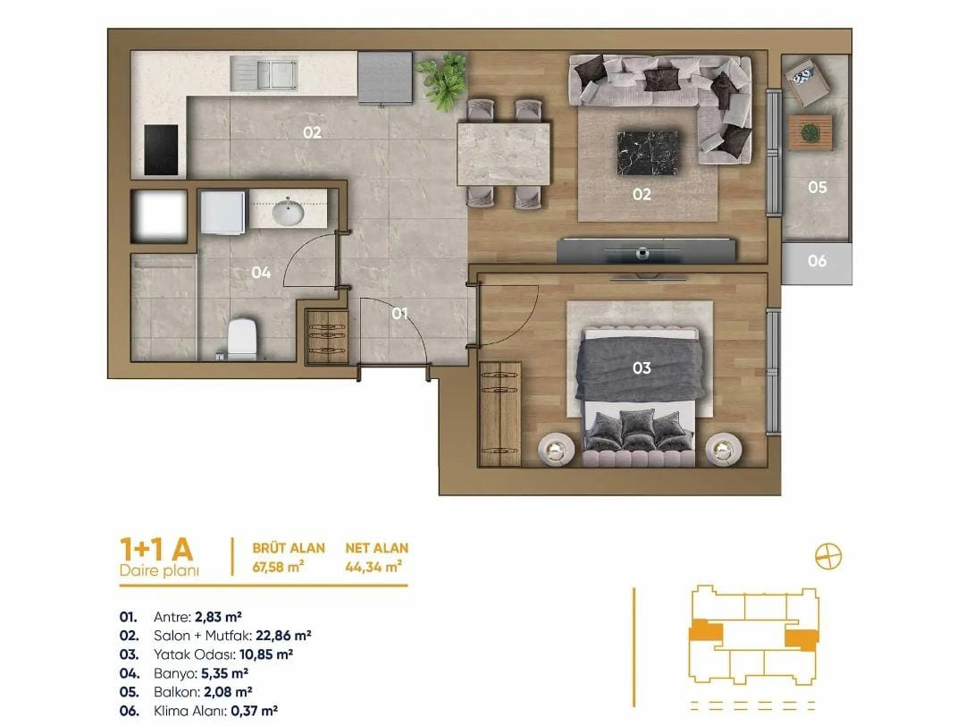 the project stands out as a premier residential opportunity in the heart of European Istanbul, offering a perfect blend of luxury, convenience, and investment potential. Spanning a generous land area of 6,500 square meters, the project features a meticulously designed 17-story building with a ground floor and three additional floors below ground, dedicated to closed parking and social services. With a total of 142 apartments in various configurations—1+1, 2+1, and 3+1—each floor hosts 8 spacious units, all thoughtfully designed with balconies and long panoramic glass windows that flood the interiors with natural light.