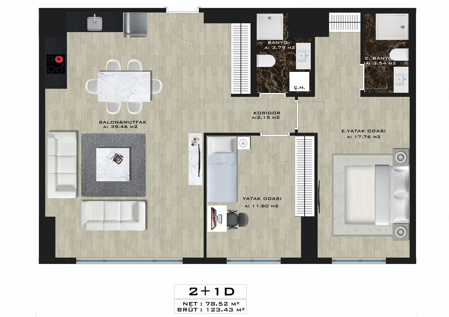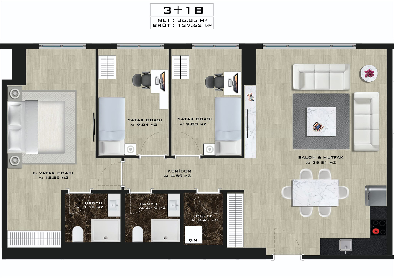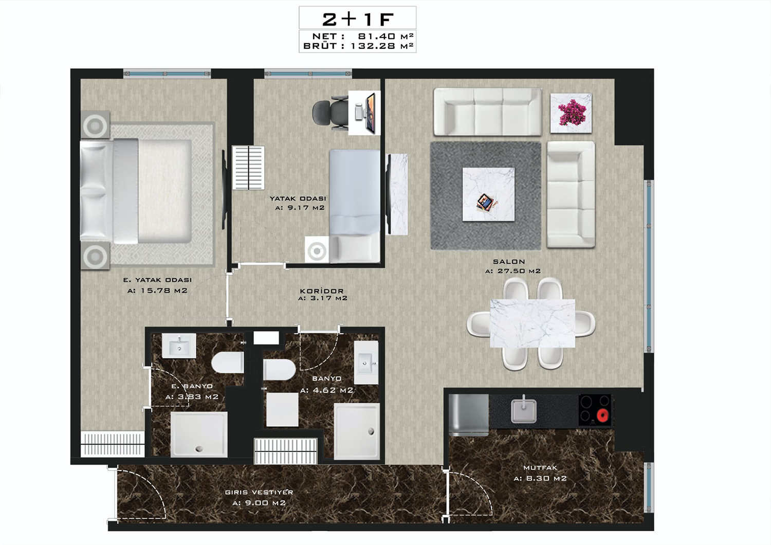 - 2+1 115m2, 133m2 / 430000$ - 500,000$ / 2 bathrooms