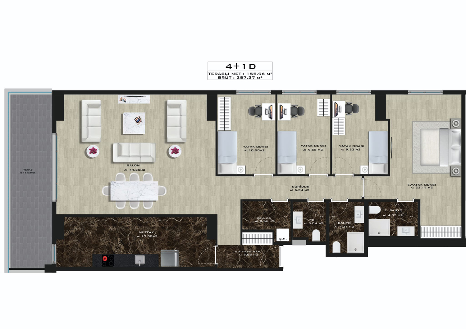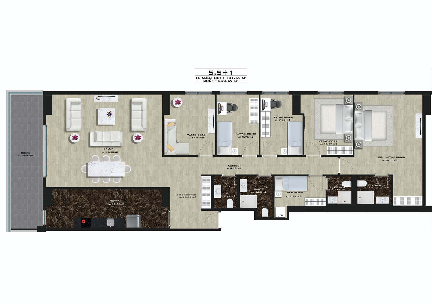 - 4+1 258 m2, 258m2 / 950,000$ - 1050,000$ / 3 bathrooms